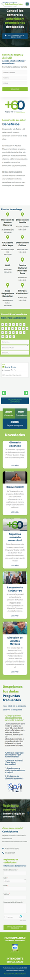 LA DIRECCIÓN DE ADULTOS MAYORES LANZÓ ESTE PROGRAMA CON EL OBJETIVO DE FACILITAR A LA POBLACIÓN DE ADULTOS MAYORES, EL ACCESO A DIFERENTES PRODUCTOS Y SERVICIOS CON PRECIOS BONIFICADOS Y/O PROMOCIONALES. DE ESTA MANERA, NUESTROS ADULTOS MAYORES CUENTAN CON UNA TARJETA DE BENEFICIOS PENSADA EXCLUSIVAMENTE PARA CONTEMPLAR SUS NECESIDADES.
